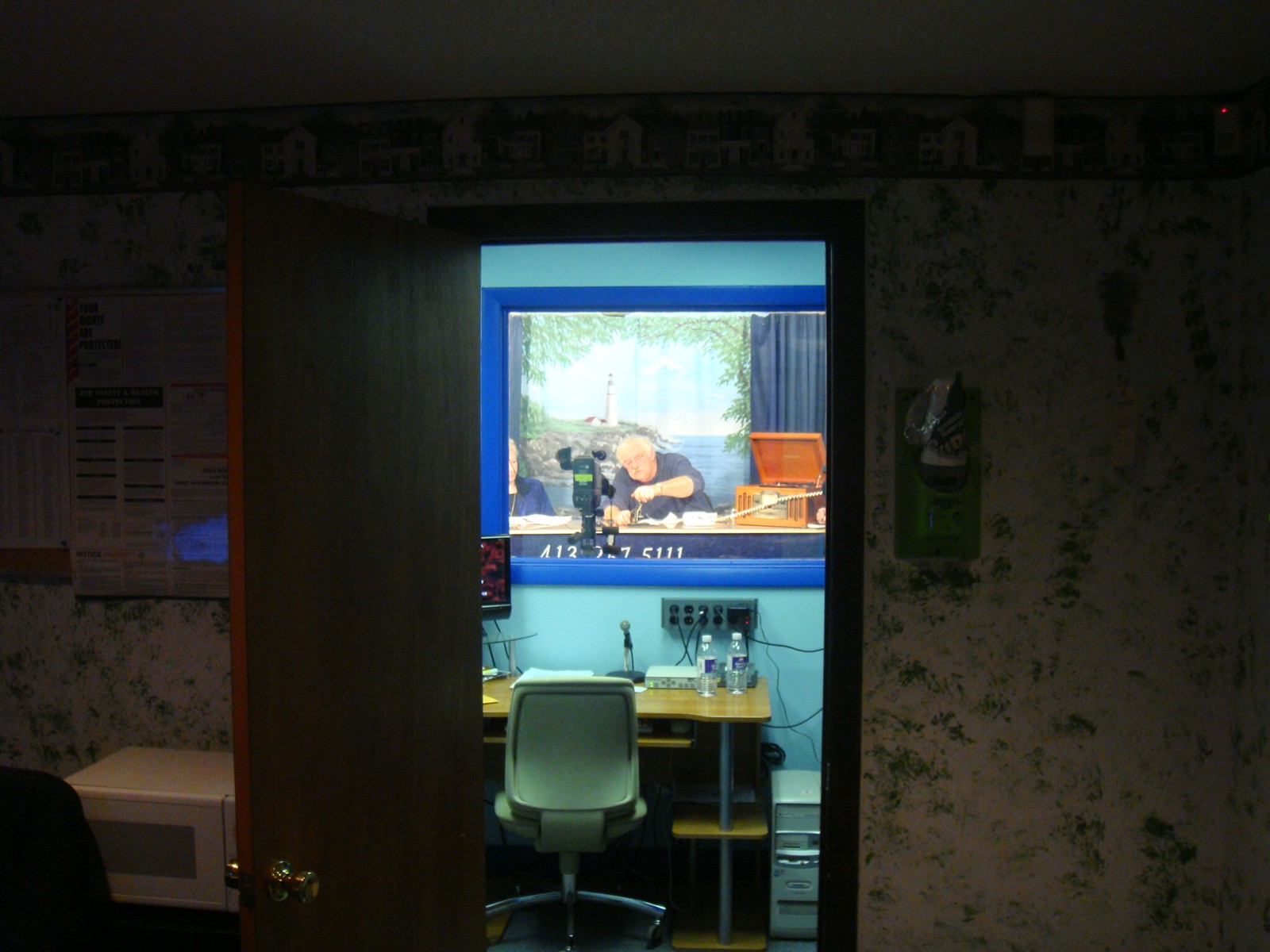 I was in the studio two weeks earlier to watch the show’s production. As you enter the small building you step into a small office. At the opposite side of the building is the studio and in between the two rooms is a third small room with all the control and recording equipment.