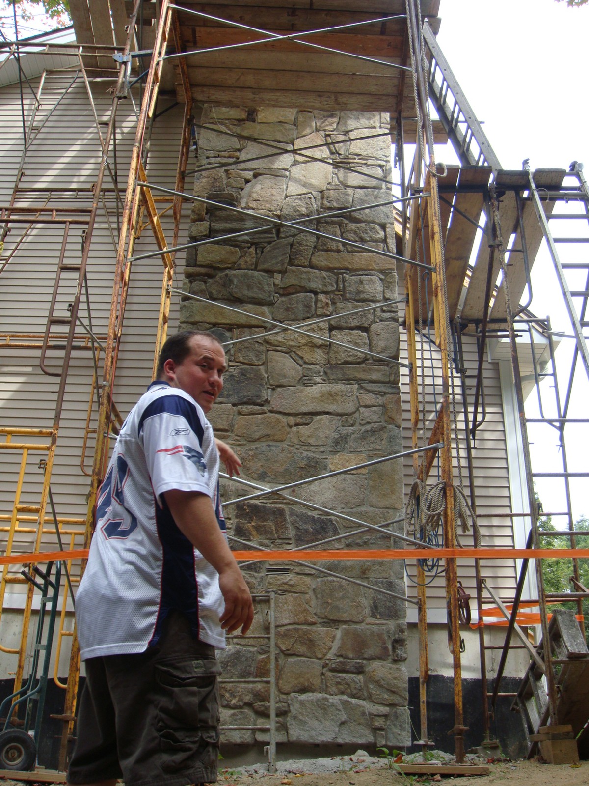 The field stone chimney will be finished just in time to be adorned during the fall foliage by the huge maple tree right next to it.