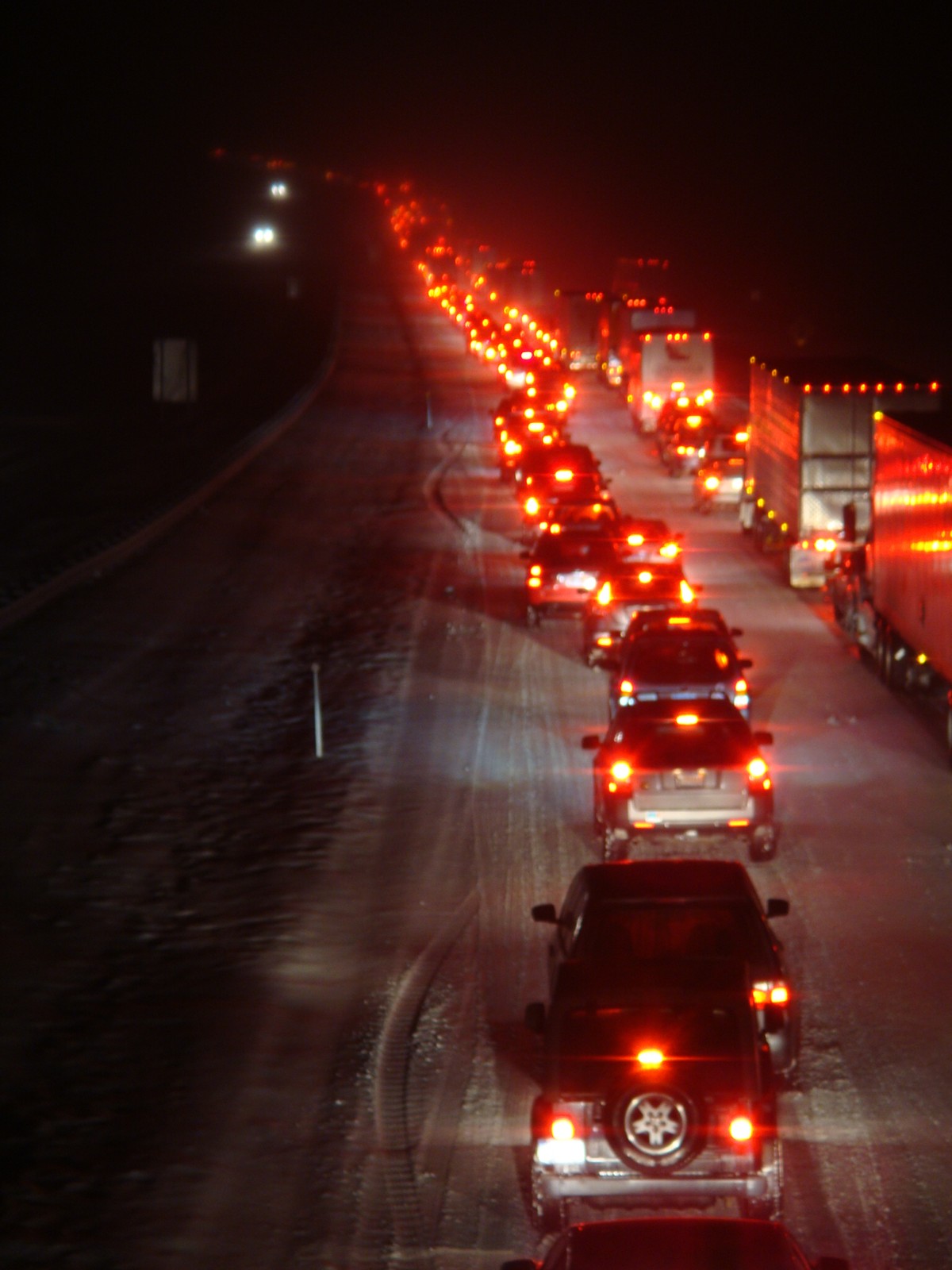 This is a picture taken at 18:28 hours from the bridge that goes over Interstate 84 at Exit 74 looking westbound towards Hartford, CT.