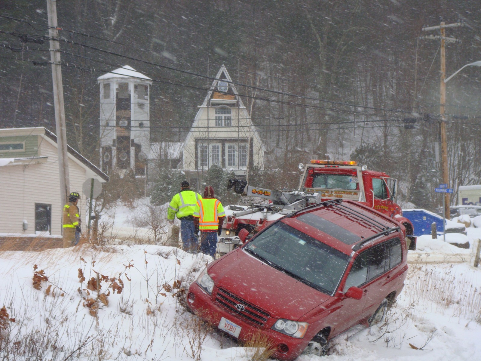 Emergency Services of the town of Holland were quick to respond, Holland Police, the Fire Department were on the scene. Two tow trucks pulled the car back on the road.