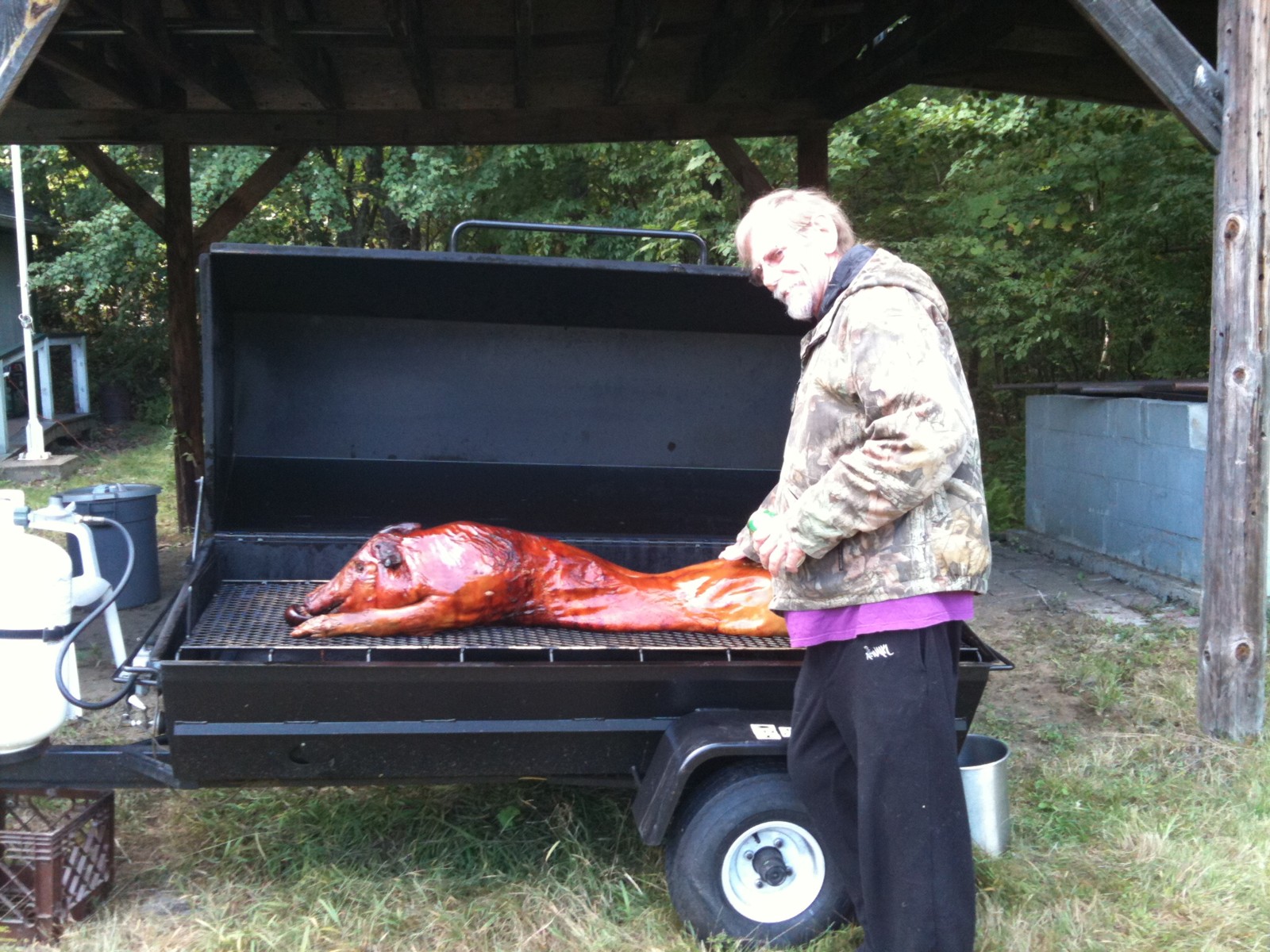 Al said that he did 15 to 20 pork roasts before and together with Willie he did a great job; it was delicious. Willie had marinated the pork.