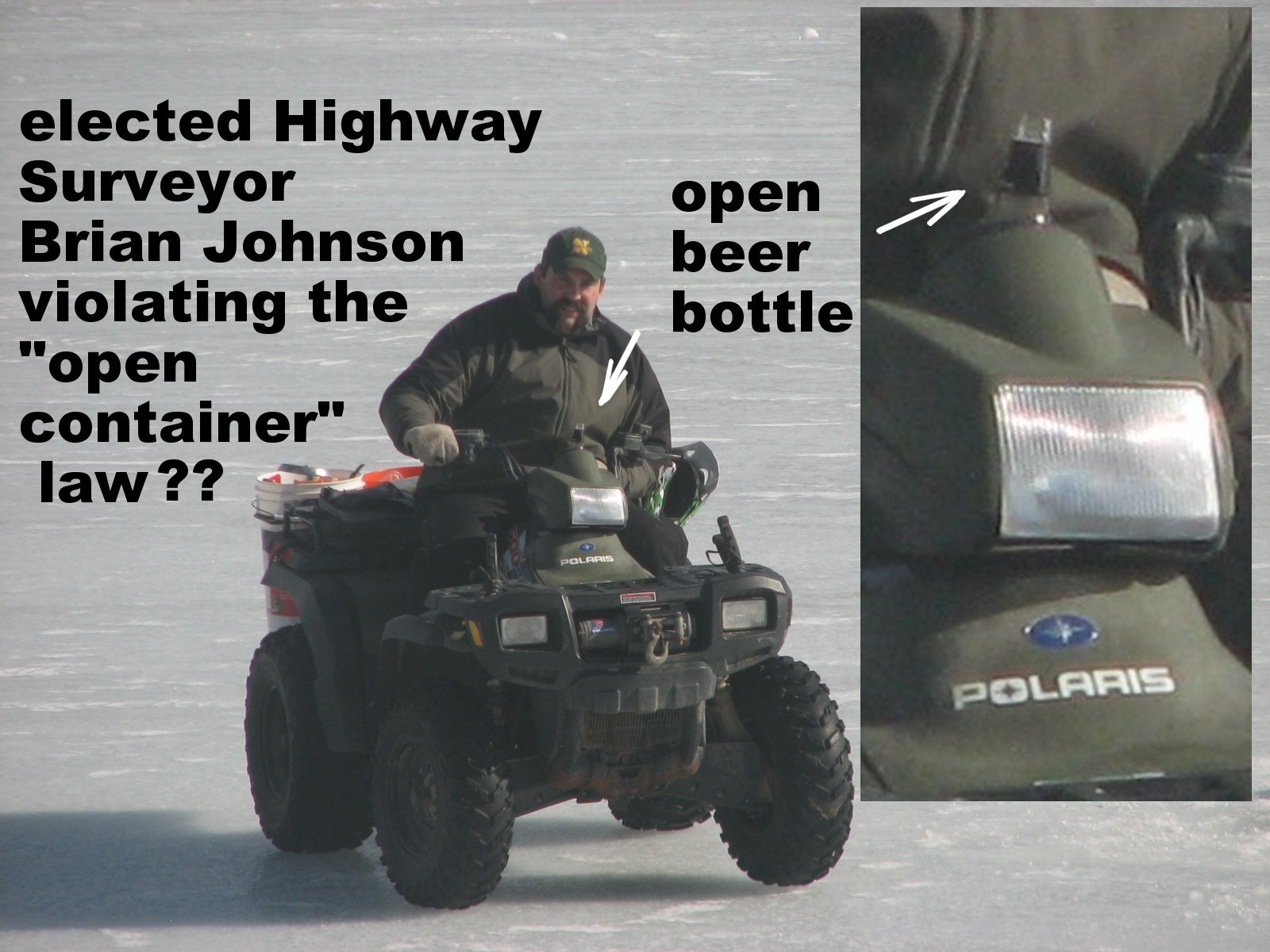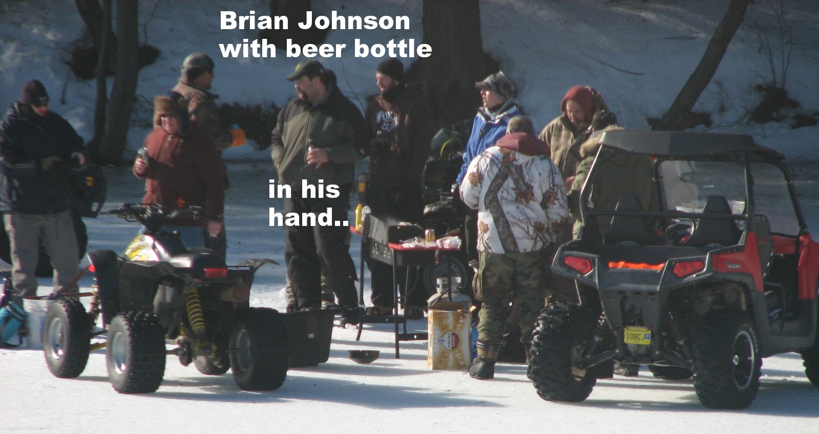 I never left the house until 15:04 hours. At that time, Brian Johnson and his gang were on the ice for 8-1/2 hours. Two men trespassed over my property and I ran up my private way, intercepted the two men, and sent them back.